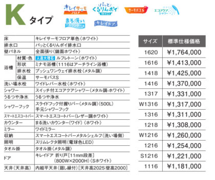 Kタイプには、上記の標準機能を搭載。