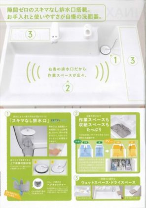 排水口は、洗面器と一体成形になった新構造。